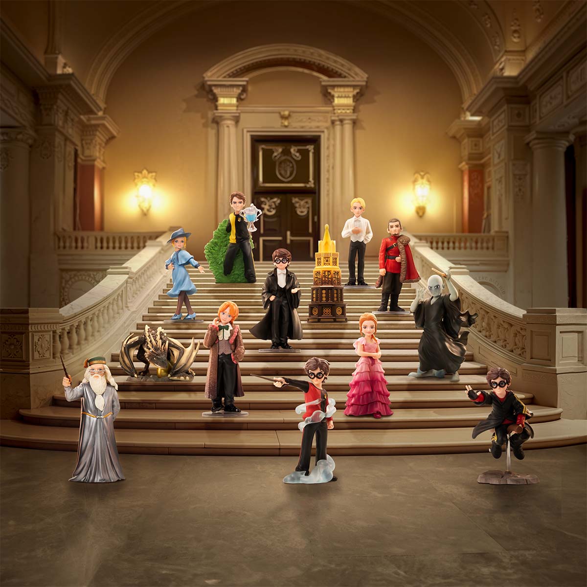 Her kör kutudan çıkan figür, Hogwarts ve rakip okullardan gelen şampiyonların büyülü atmosferine açılan bir pencere sunuyor.